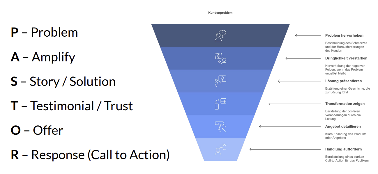 Bevor wir in die Tools eintauchen, lass uns über die Struktur sprechen. Denn egal mit welchem Tool du arbeitest, ohne die richtige Content-Strategie wird auch die schönste Website nicht konvertieren. Ich nutze für meine Salespages das PASTOR-Framework, ein bewährtes Copywriting-Modell, das gezielt auf Conversion ausgelegt ist.
